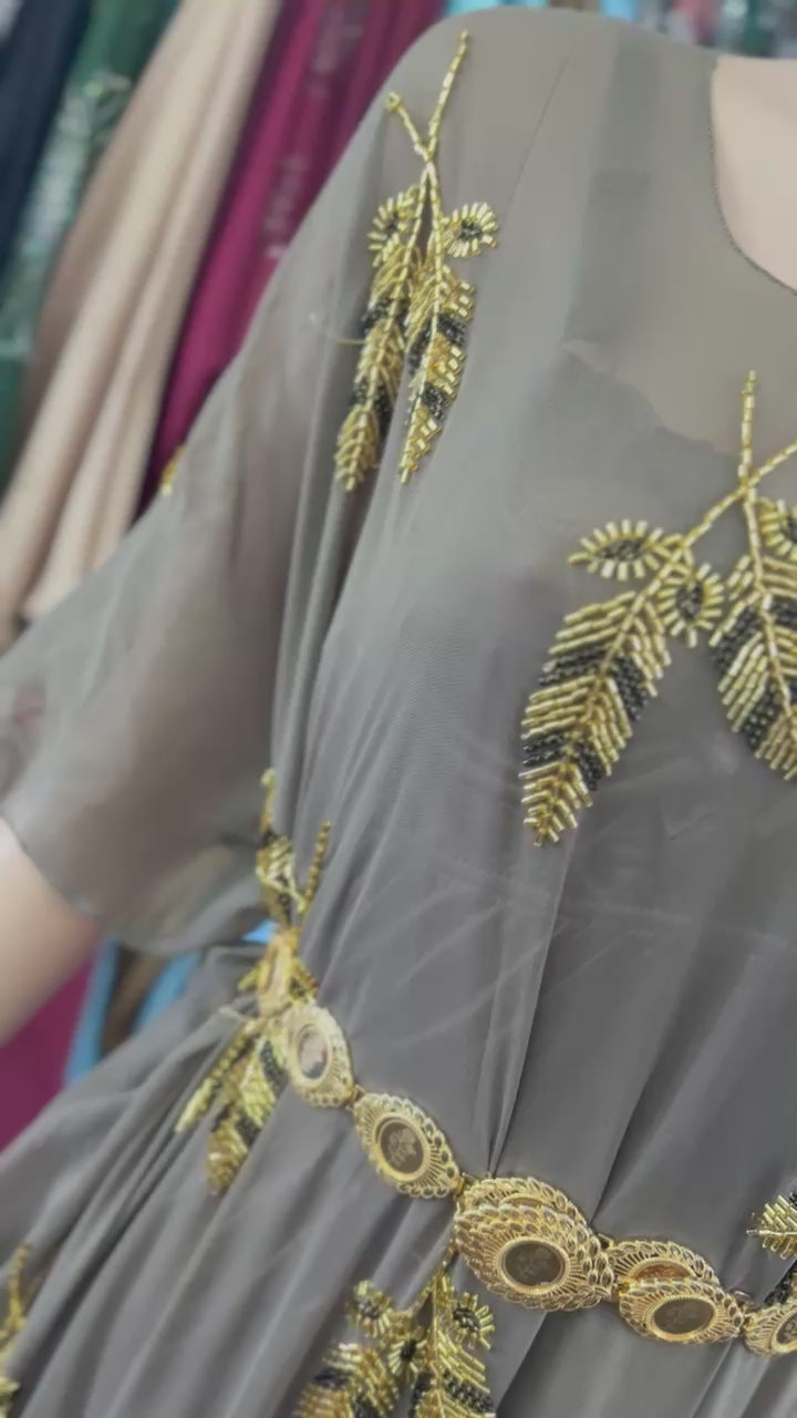 Dusty brown, stitched Yemeni party dress with inner slip/gown