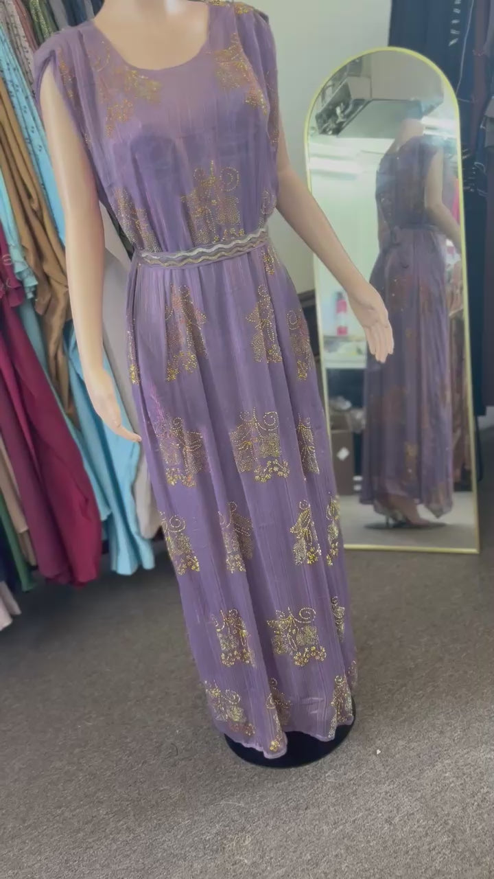 Iridescent purple, stitched Yemeni party dress with inner slip/gown and belt included